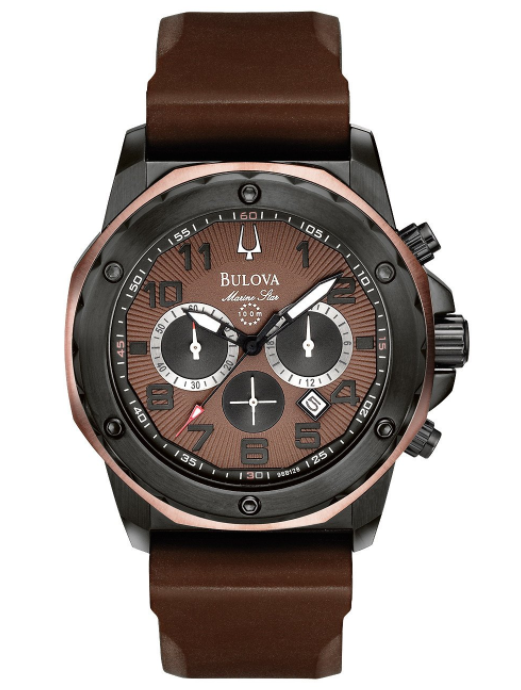Bulova Men's Marine Star Chronograph Brown Rubber Watch 98B128