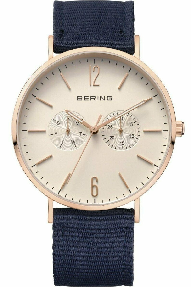 Bering Men's Classic Multifunction Cream Dial Blue Nylon Watch 14240-664