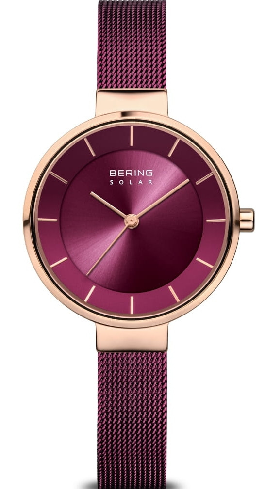 Bering Women's Solar Purple Dial Brushed Rose Gold Stainless Steel Watch 14631-969