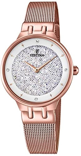 Festina Women's Mademoiselle White Crystal Dial Rose Gold Mesh Stainless Steel Watch F20387/1