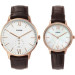 Fossil Men and Women Andy and Addison White Dial Brown Leather Watch FS5564SET