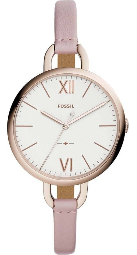 Fossil Women's Annette Silver Dial Pink Leather Watch ES4356