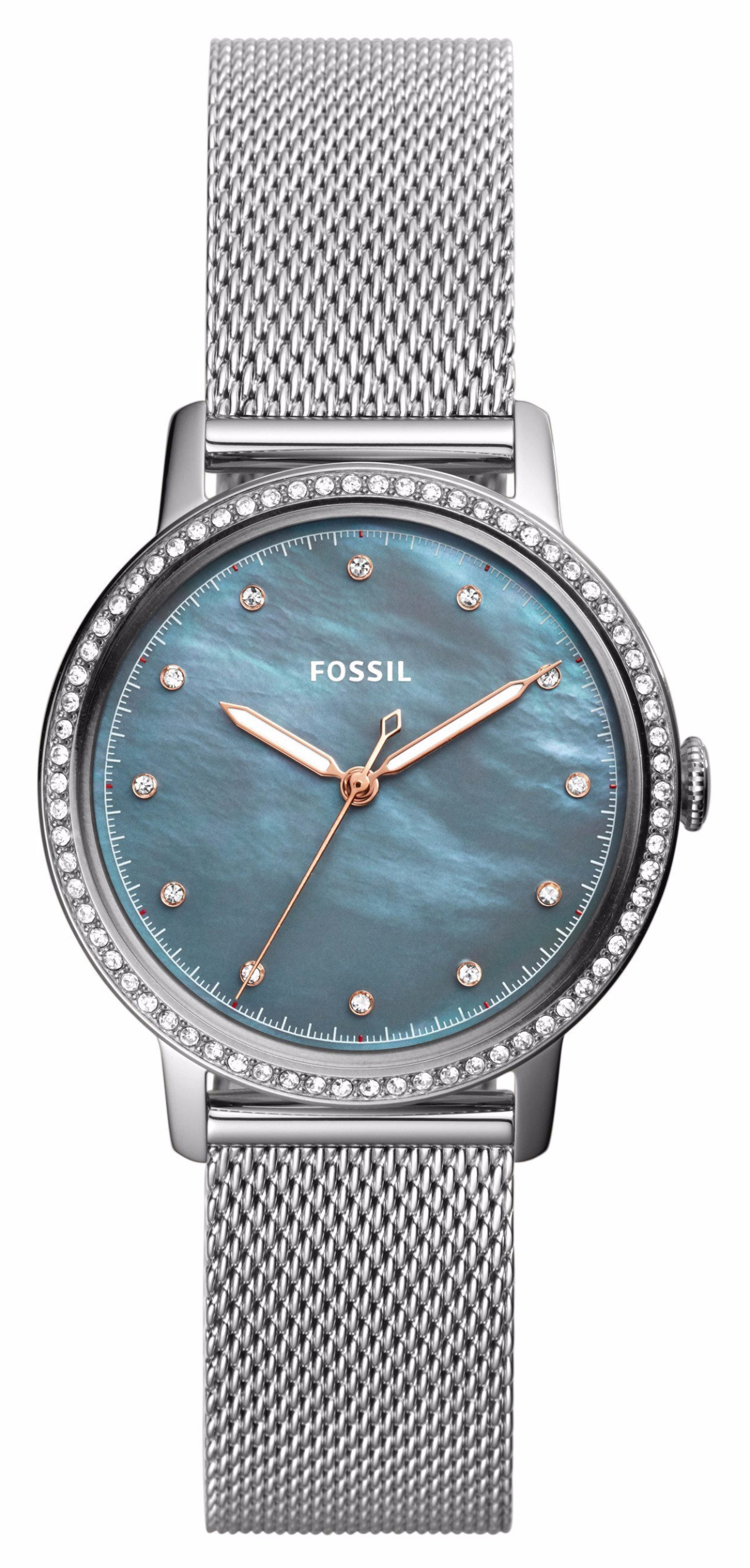 Fossil Women's Mother Of Pearl Dial Stainless Steel Mesh Watch ES4313