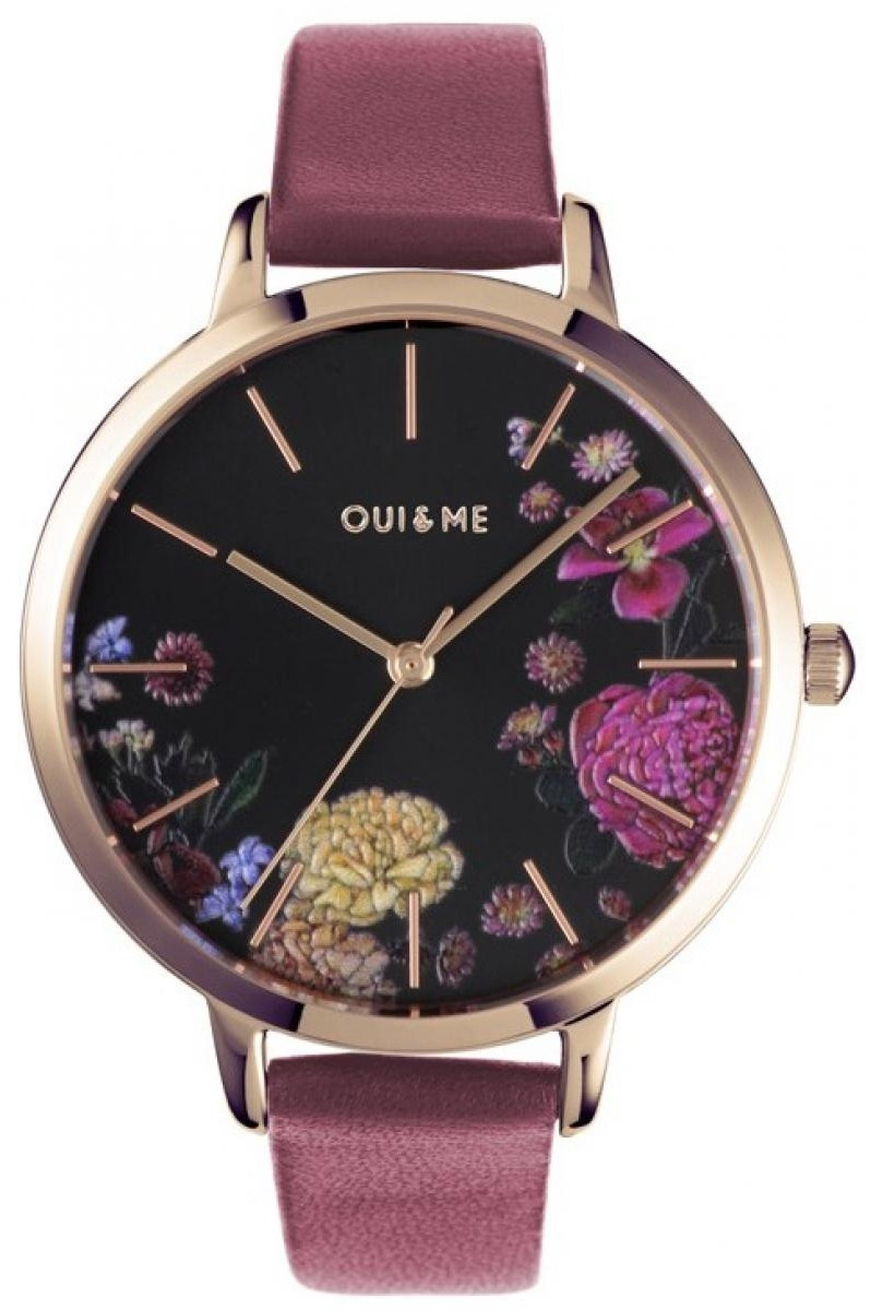 OUI&ME Women's Grande Fleurette Black Floral Dial Pink Leather Watch ME010086