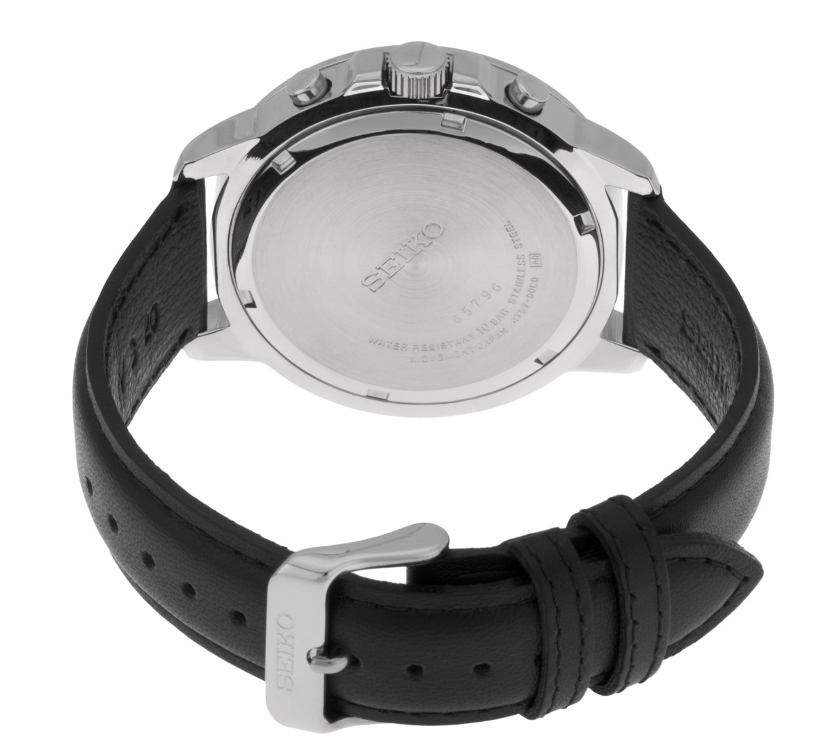 Seiko Men's Black Dial Leather Chronograph Watch SKS453