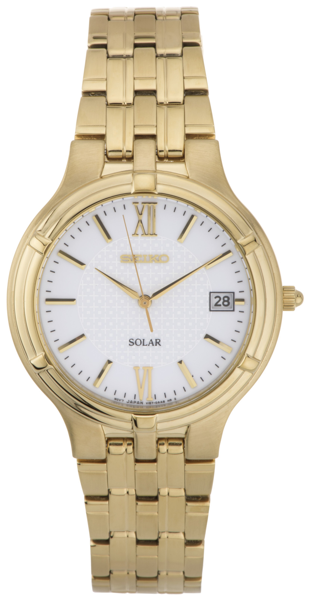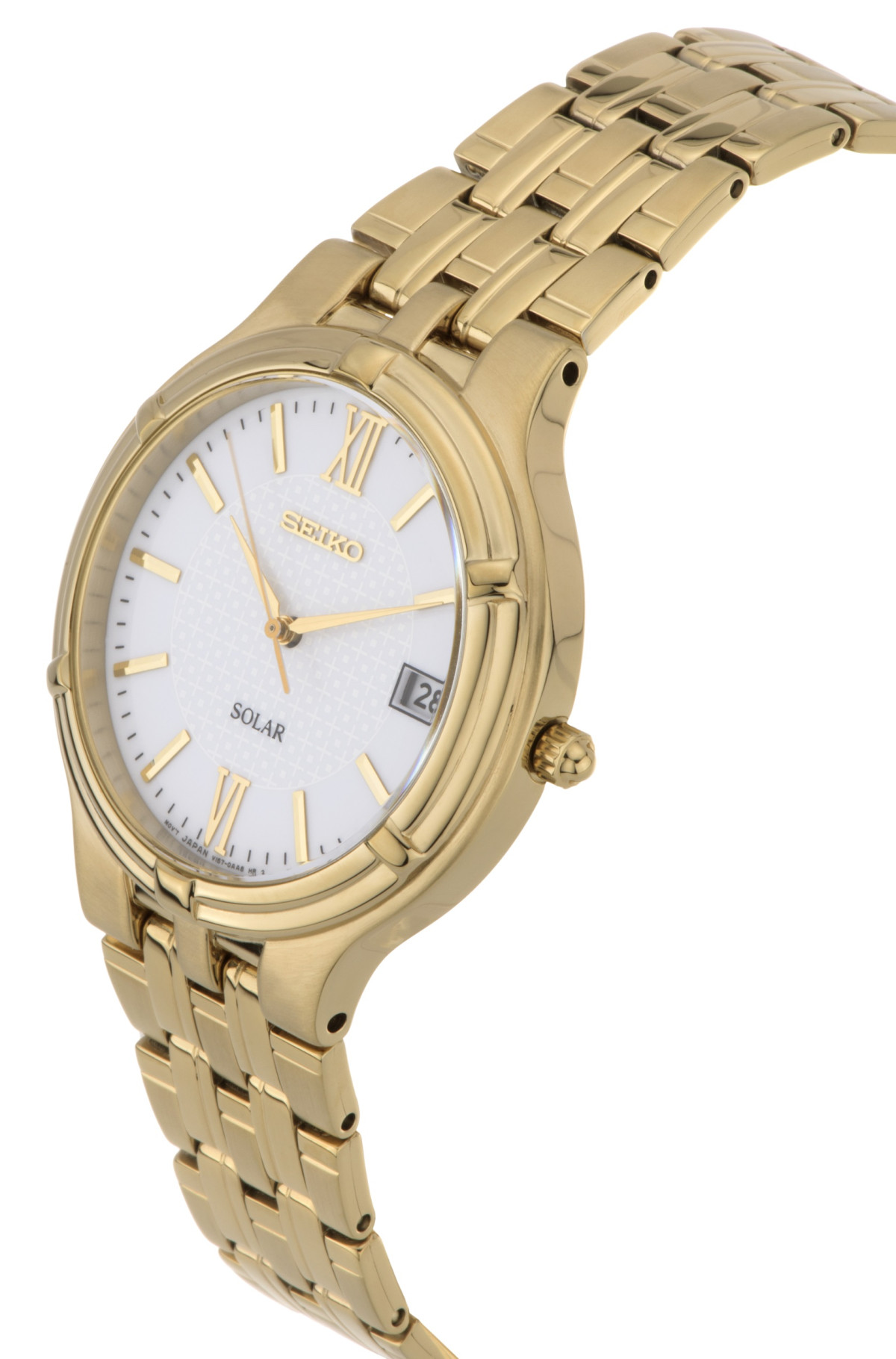 Seiko Men's SNE030 Solar Gold Stainless Steel White Dial Watch