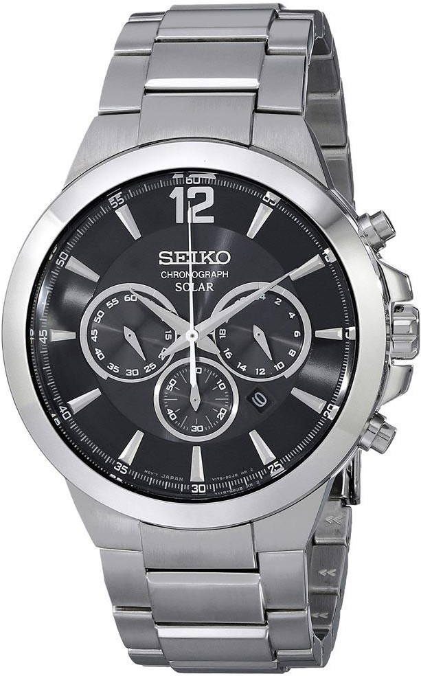 Seiko Men's Solar Chronograph Black Dial Watch SSC321