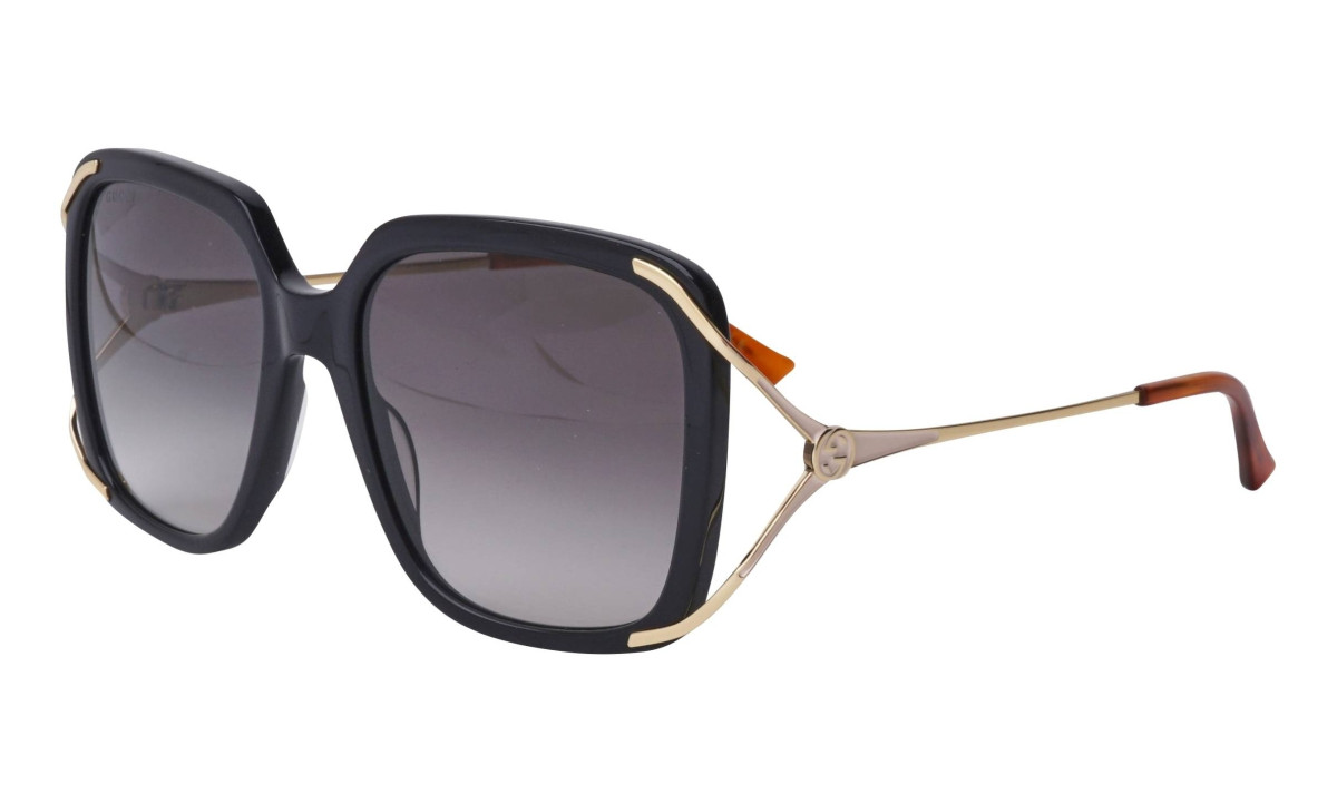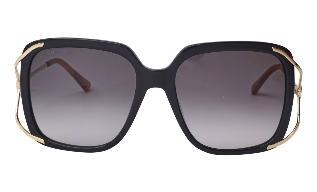 Gucci Women's Butterfly Black/Gold Frame Grey Gradient Lens Sunglasses GG0647S-001-56