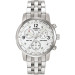 Stainless steel case with a silver stainless steel strap.